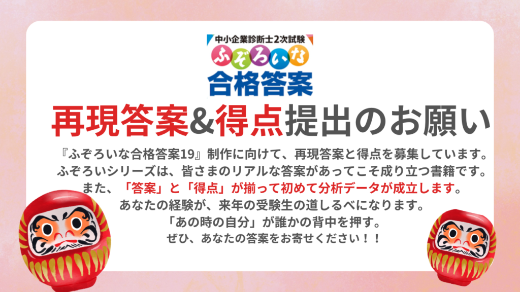 既に再現答案を提出いただいた皆様につきましては案内メールまたは下記フォームより得点提出のご協力をお願いいたします。